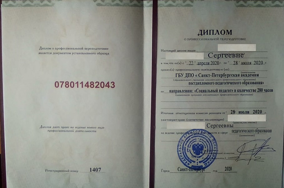 Диплом о профессиональной переподготовке по направлению"Социальный педагог" . Купить диплом о профессиональной переподготовке социальный педагог вы сможете в течении 1 дня. Закажите диплом через удобную форму и мы свяжемся с вами.