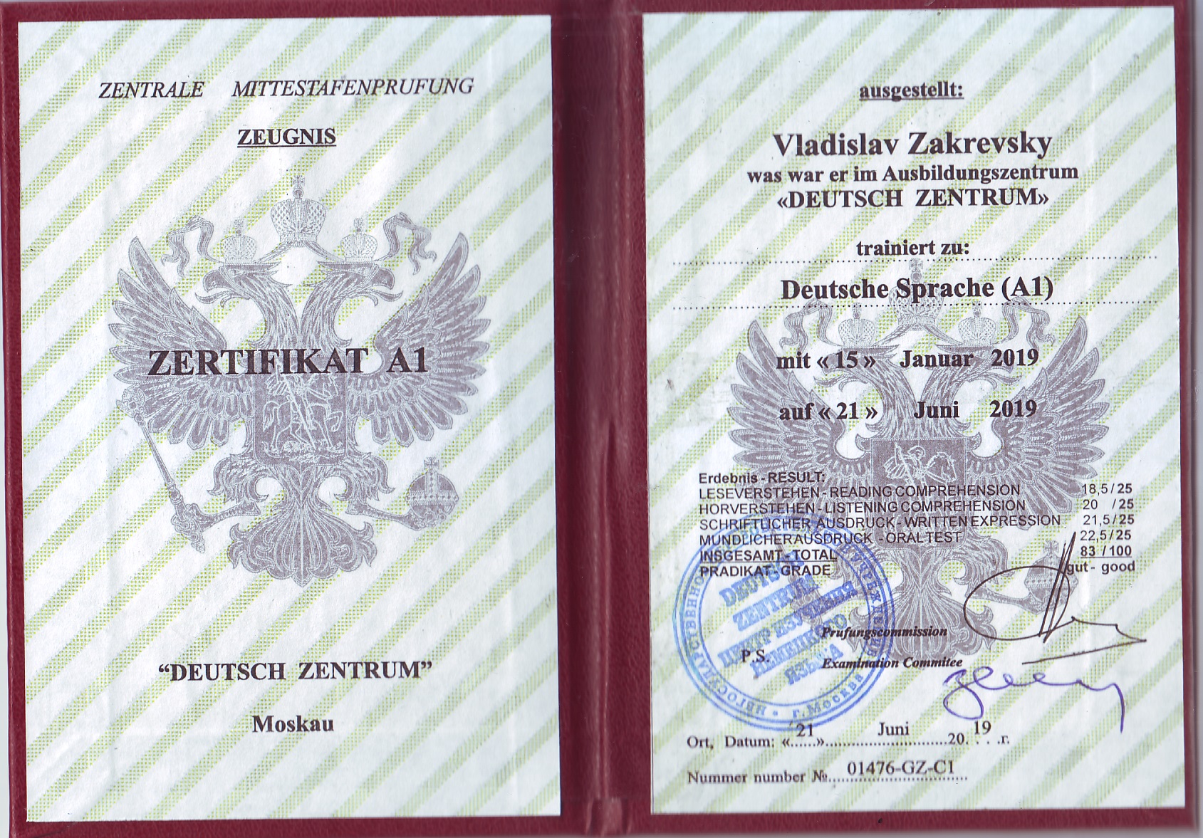 21.05.2024 Валерий Петрович. Обратился за помощью по сертификатам немецкого языка для переезда в другую страну. Все обЪяснили, рассказали.Кроче все устроило, заказа и привезли на адрес в москве. Приятно работать с таким отношением к клиентам!