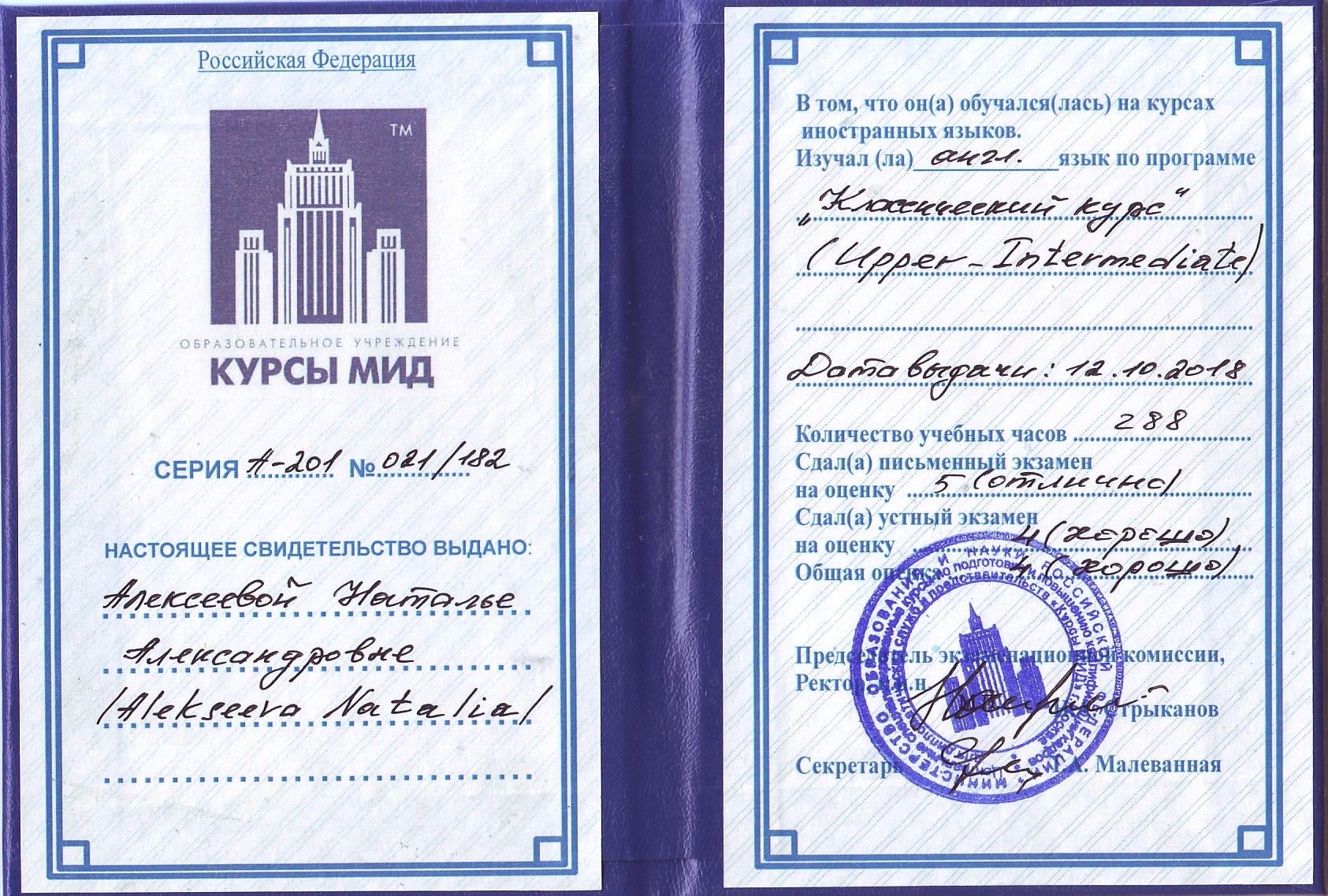 Купить сертификат английского языка с обучением МИД или любой предложенных школ Санкт-Петербурга и Москвы.