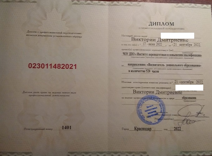 Купить диплом воспитателя дошкольного возраста (профессиональная переподготовка) можно в нашей компании. Единственным условием является ваша практическая подготовка, опыт работы и знания. Лишь в таком случае вам действительно необходим диплом воспитателя.