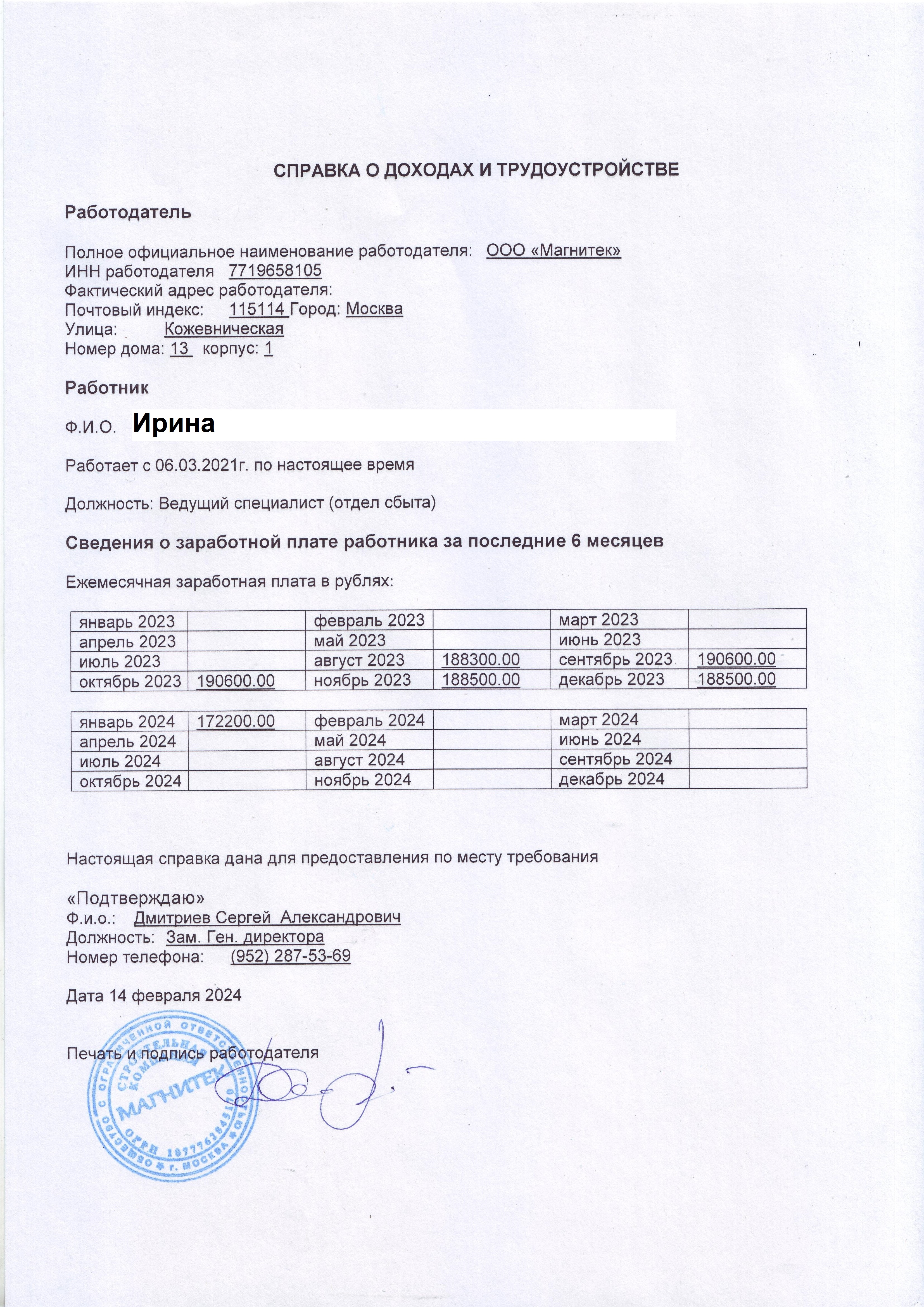 Пример справки о доходах нажмите на справку чтобы увеличить изображение!