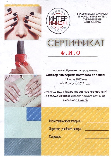 Мы предлагаем вам оперативное решение этого вопроса. У нас вы сможете быстро получить сертификат мастера маникюра и педикюра.