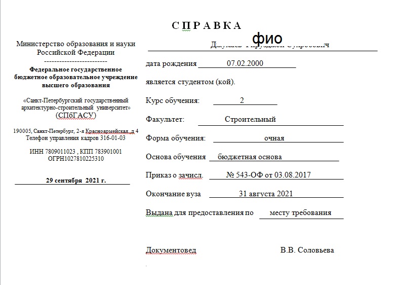 Справка об обучении в вузе может содержать следующую информацию: