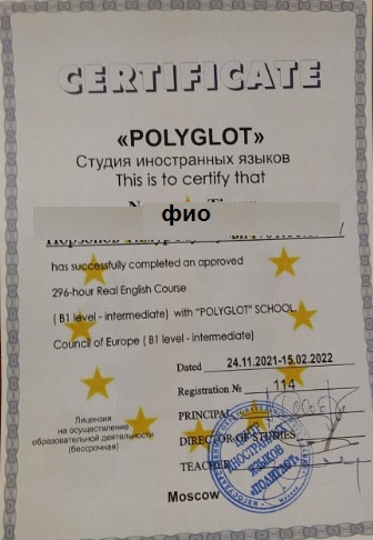 Свидетельство иностранного языка (английский)